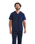 - V-neck style with left chest pocket with combined mobile and pen pocket