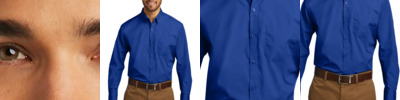 FEATURES Industrial laundry friendly. Banded, topstitched, button-down collar. Placket front with button closure. Tailored sleeve plackets. Topstitched cuffs with button closures.